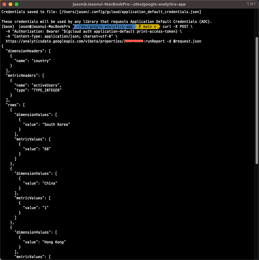 API 빠른 시작: 명령줄 사용 | Google Analytics Data API | Google for Developers