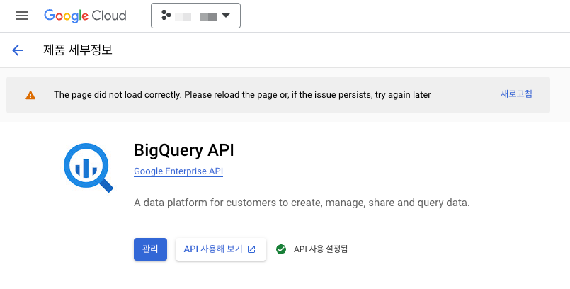 - BigQuery 검색 후 'BigQuery API'를 선택