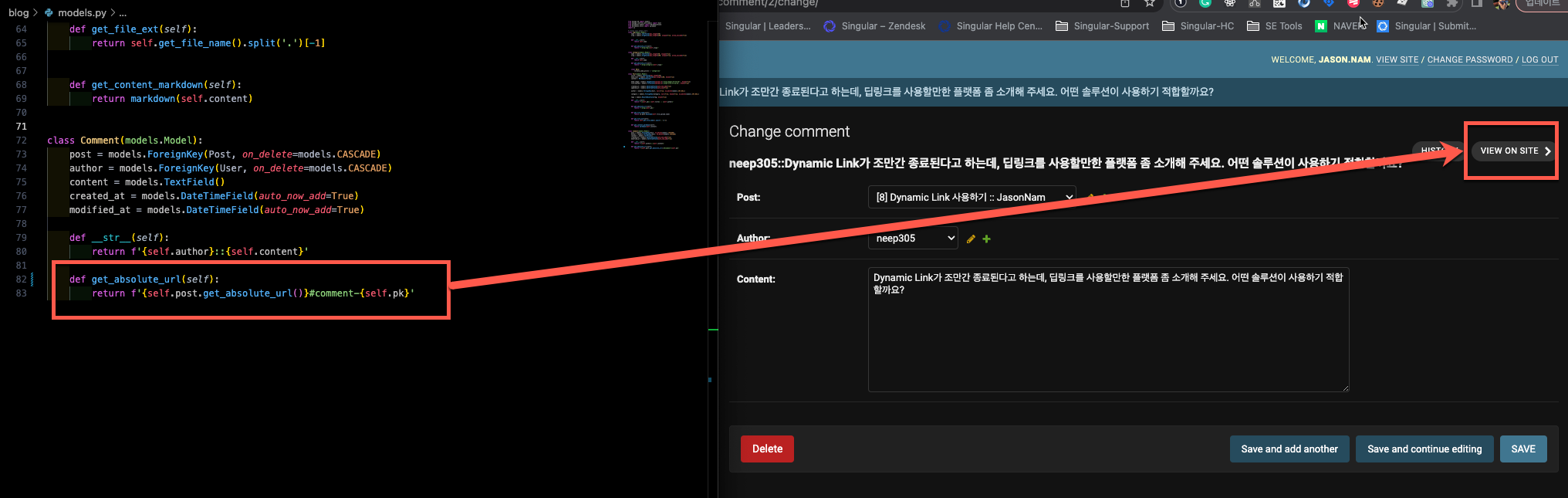 [Django] Admin View On Site 활성화하는 방법