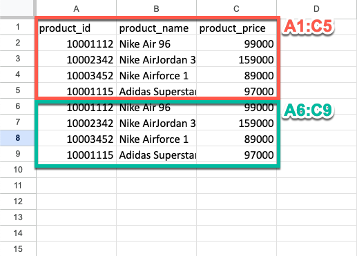 googlesheet.append_data('ProductTable!A1')