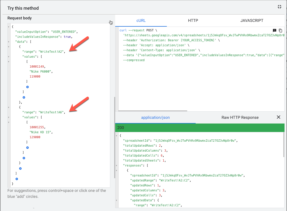 Method: spreadsheets.values.batchUpdate | Google Sheets | Google for Developers