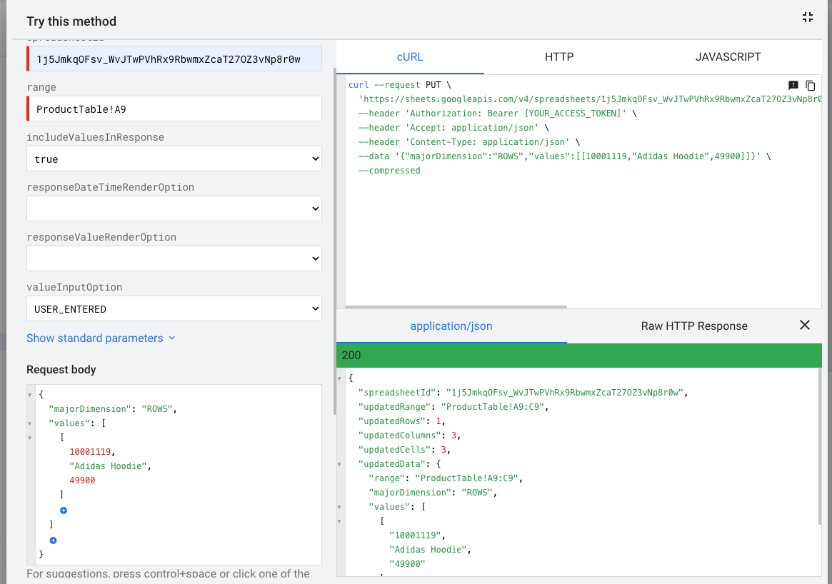 PUT https://sheets.googleapis.com/v4/spreadsheets/{spreadsheetId}/values/{range}